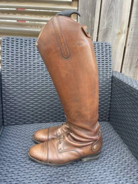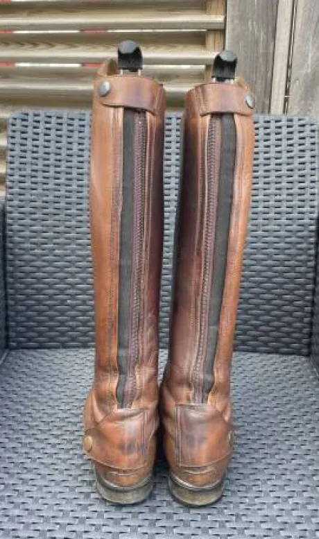 Bottes d’équitation cuir Ferro Di Cavallo taille 37 avec ajout d’une bande élastique sur la fermeture éclair (spécial large mollet).