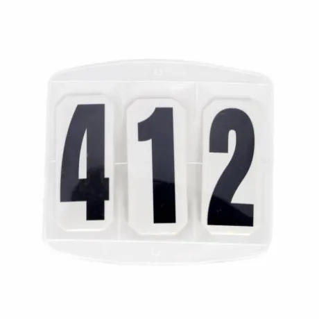 Numéro de départ pour le cavalier ou le cheval. Dans la pochette plastique, vous trouverez 3 numéros que vous pouvez modifier pour faire le chiffre dont vous avez besoin pour votre numéro de départ lors d’une compétition. Ce brassard peut se mettre sur le bridon du cheval, le tapis de selle ou la manche du cavalier grâce à ses deux élastiques et agrafes.