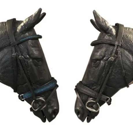 Le bridon Shiny de chez JMR PRO est sublime avec le frontal et la muserolle décorés avec du crystal fabric noir ou bleu royal.