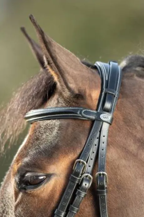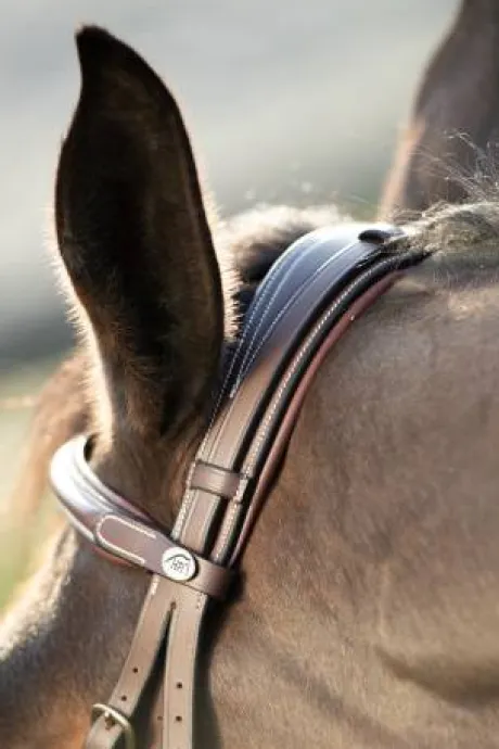 - Large têtière anatomique, frontal et muserolle rembourrés et doublés de cuir souple