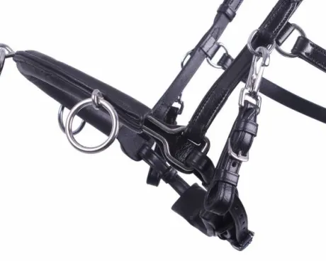 De forme anatomique, ce caveçon peut aussi être utilisé avec un mors.