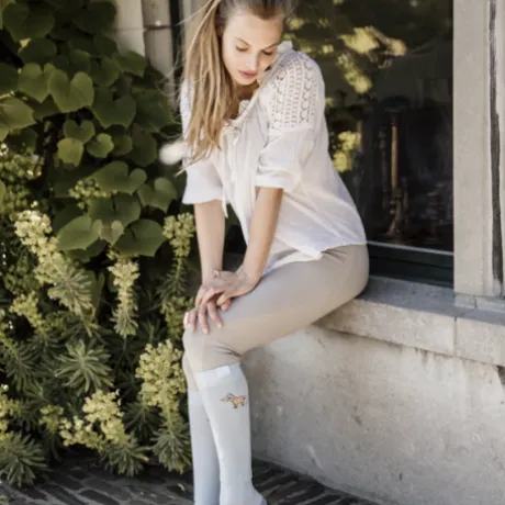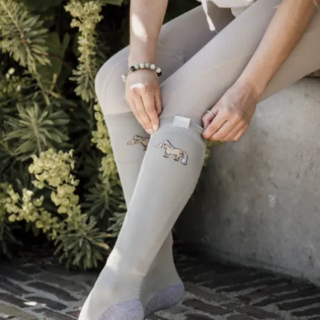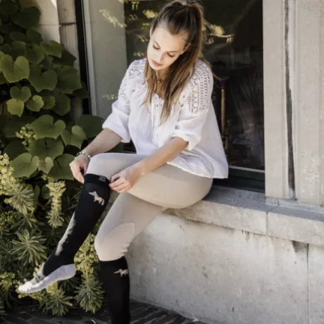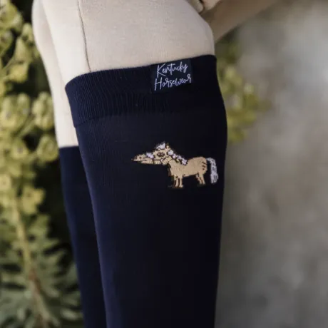 Apporter un peu plus de fun à vos chaussettes avec notre modèle « Sammy ». Tout en gardant un certain style, ces chaussettes vous apporteront un maximum de confort sans pour autant ajouter de l’épaisseur sous vos bottes ou bottines et mini-chaps. Cette paire de chaussette est de type haute et grâce à sa composition, elle sera parfaite pour un usage quotidien. Notre mascotte Sammy y est imprimé sur le dessus de la chaussette ainsi qu’un logo Kentucky très subtile.