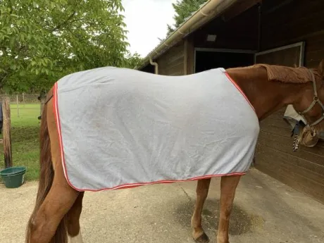Sans sangle ventrale, avec une attache au poitrail et une cordelette sous la queue