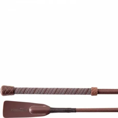 Découvrez la cravache de saut Ida, conçue pour offrir une prise en main optimale grâce à sa poignée antidérapante. Sa claquette ouverte en cuir et son corps en polycarbonate recouvert de nylon tressé garantissent une durabilité et une performance accrues lors de vos séances d’équitation.