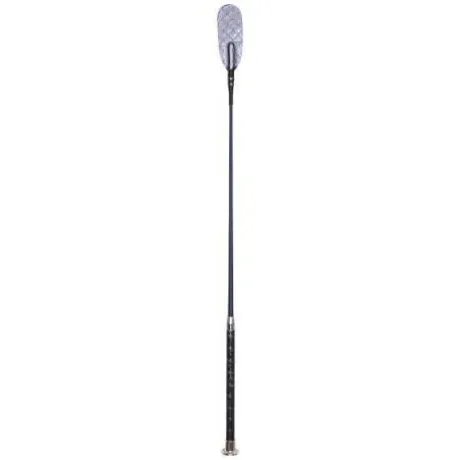 Cravache de saut élégante avec poignée et claquette avec le motif en relief Welmoed en matériau PU métallique.