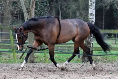 Enrênements coton réglage pour la longe. L’enrênement passe par-dessus les épaules, entre les membres avant et va jusqu’à la tête.