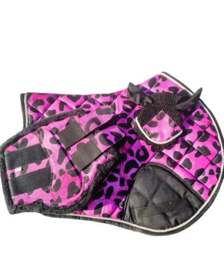 Découvrez cet ensemble d’équitation audacieux et stylé, composé d’un tapis de selle matelassé, d’un bonnet anti-mouches et de protections assortis. Le tissu rose vif orné de motifs léopard noirs offre un design original et moderne, parfait pour les cavaliers recherchant à la fois confort et esthétique. Les finitions soignées, les scratchs solides et le rembourrage optimisé assurent un maintien idéal et une protection efficace du cheval pendant l’entraînement