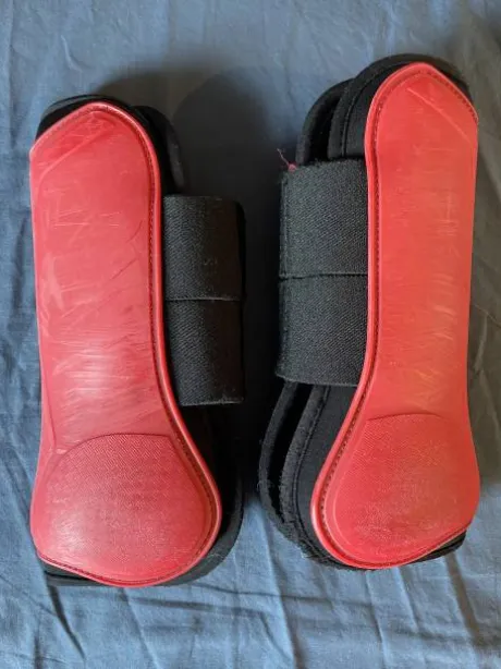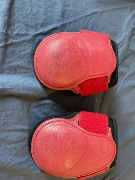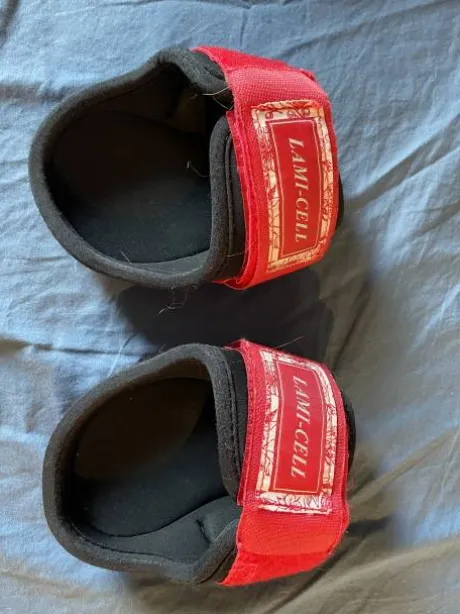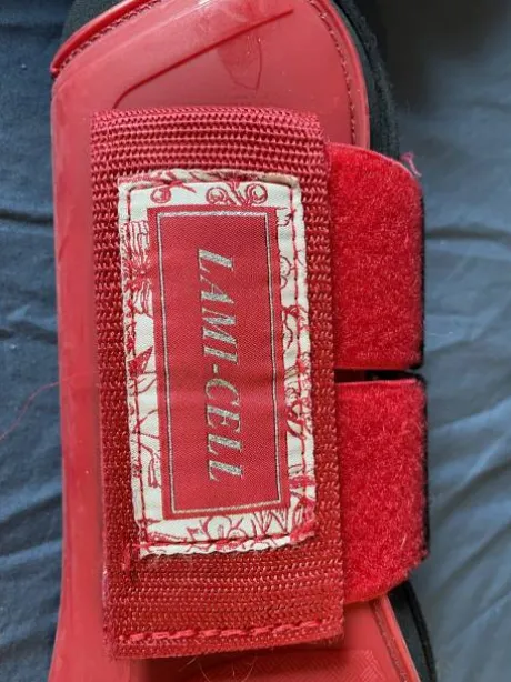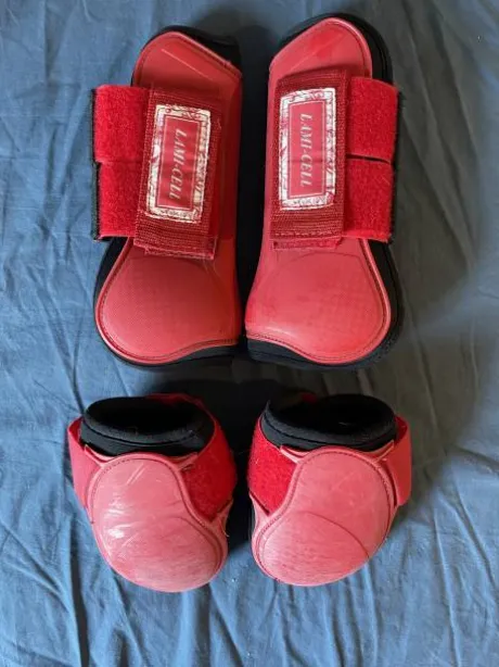 Ensemble guêtres et protèges-boulets rouges de la marque Lami-Cell.