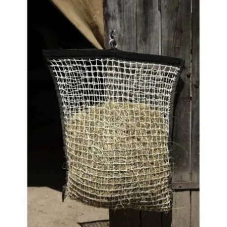 Filet à foin très pratique et facile à remplir grâce à sa fermeture par bande auto-agrippante renforcée.