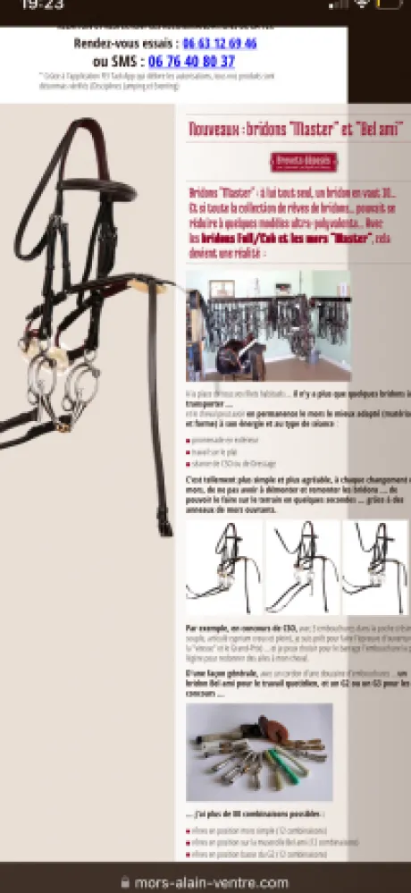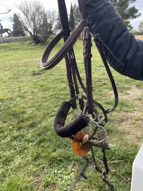 Pour cause de retraite anticipée, à vendre, filet modèle Bel Ami, créé par Alain ventre. Filet très technique et très simple, monté sur un cuir de la marque Dyon avec ensemble de mort interchangeables, sans enlever les montants, ni les rênes. Il a été ma révolution sur les parcours d’obstacles, mais aussi en travail sur le plat. Acheter neuf.