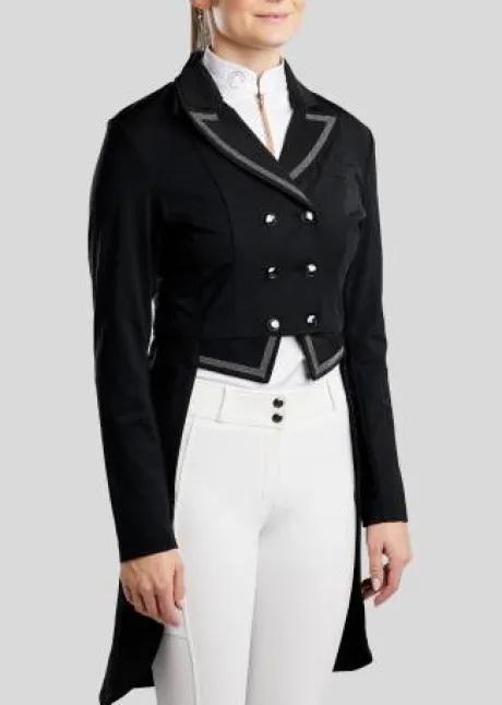 Le frac long de dressage Montar, orné de cristaux gun metal, est conçu pour offrir à la fois une allure chic et une performance optimale lors de vos compétitions.
