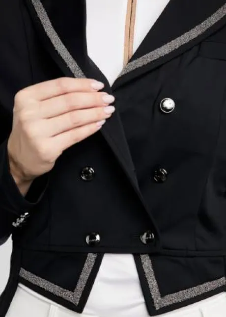 Fabriqué en polyester élastique et durable, ce frac vous garantit une grande liberté de mouvement tout en étant léger, respirant et confortable. Sa coupe cintrée met en valeur votre silhouette tout en ajoutant une touche d’élégance. Les boutons en gun metal, assortis aux cristaux, apportent une finition raffinée à ce vêtement de concours.