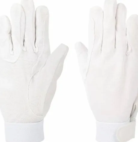 Gants respirants, picots antidérapants, fermeture velcro, lavable à 30°C, 100% coton.