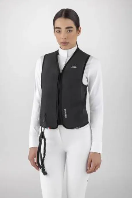 - Gilet airbag ergonomique pouvant être porté sous* tous types de vestes de compétition compatibles (constituées avec un minimum de 15% d’élasthanne) ou par-dessus.