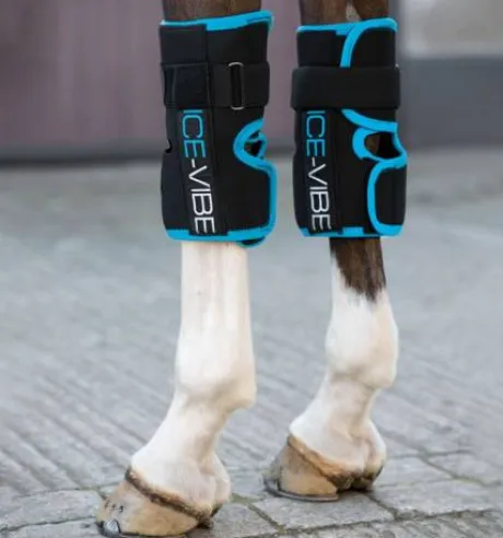Enfin des guêtres pour genoux avec des propriétés thérapeutiques vraiment efficaces ! Les Guêtres pour Genoux Ice-Vibe® ont des guêtres de massage rechargeables contenant une technologie de pointe, offrant à la fois une thérapie par le froid et par le chaud pour l’optimisation de la santé ou la rééducation suite à blessure de votre cheval. Conçues pour s’adapter aux genoux de votre cheval tout en permettant une liberté de mouvement complète, ces guêtres sont faciles à utiliser et extrêmement efficaces. La poche contenant les billes de gel vient s’enrouler facilement autour du genou, suivie de la guêtre extérieure contenant le panneau vibrant. Les poches extensibles permettent d’insérer et de retirer facilement les panneaux, et les fermetures Velcro sécurisées empêchent la guêtre de glisser.