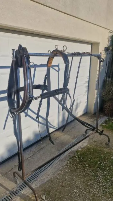 Voici une paire d’harnais léger utilisée sur des Franches-Montagnes. État très correct car utilisé uniquement lors de mariage.