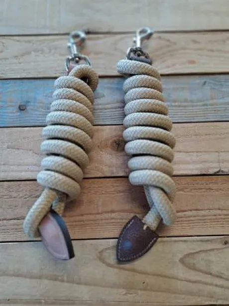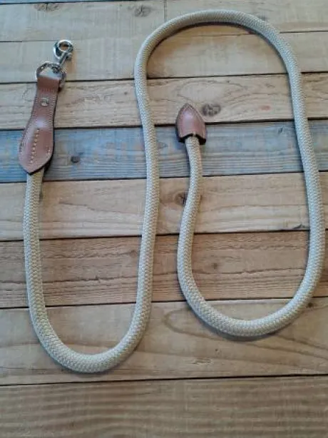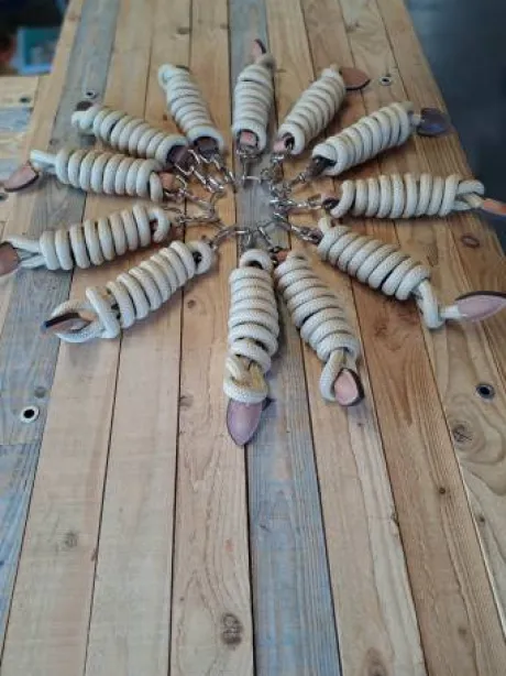 L’extrémité de la longe est fini par un morceau de cuir pour protéger cette dernière.
