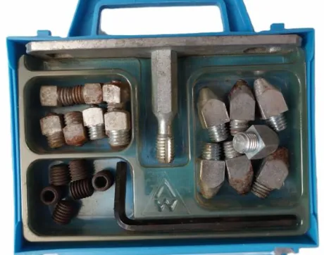 A vendre Malette à Crampons standard, bon état. Un Hérisson pour le nettoyage des mortaises de crampons est offert (état neuf)