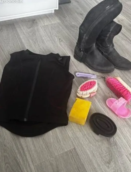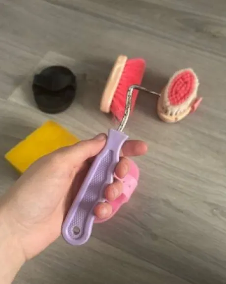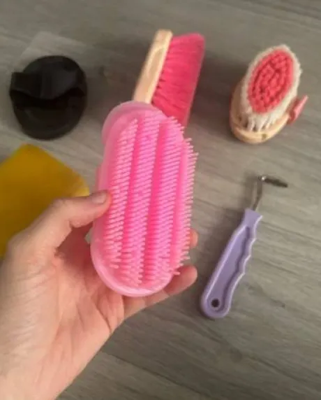• Lot de brosses : 1 étrille américaine, 1 bouchon (brosse dure), 1 brosse douce, 1 éponge, 1 étrille finlandaise et 1 cure-pied. Idéal pour débuter : 4€