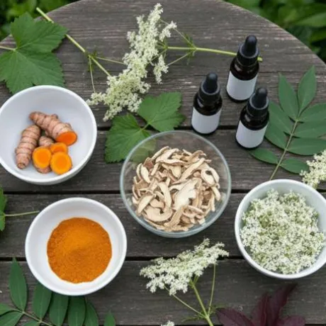 Curcuma, Harpagophytum et la reine des prés et de trois bourgeons présentés en macérat mère le Cassis, frêne et vigne rouge.