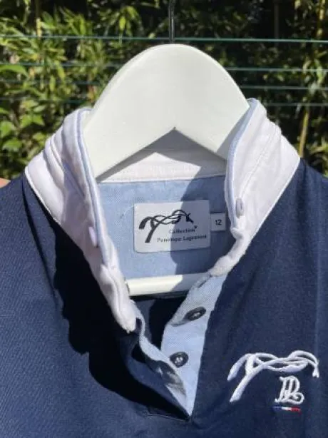 Polo de concours, Pénélope Leprévost, fille en taille 12 ans, couleur bleu marine, blanc, en très bon état.