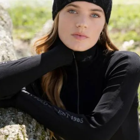 Élastique dans 4 directions avec son extérieur doux, respirant, col roulé haut et sa fermeture zippée idéal pour vos séances d’équitation ou votre quotidien.
