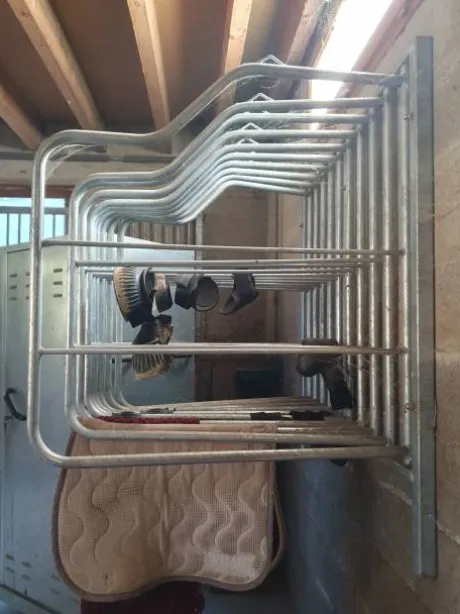 Porte couvertures et tapis professionnel, 10 branches en acier galvanisé. Largeur: 140 cm, Hauteur: 95cm. Profondeur: 90cm.