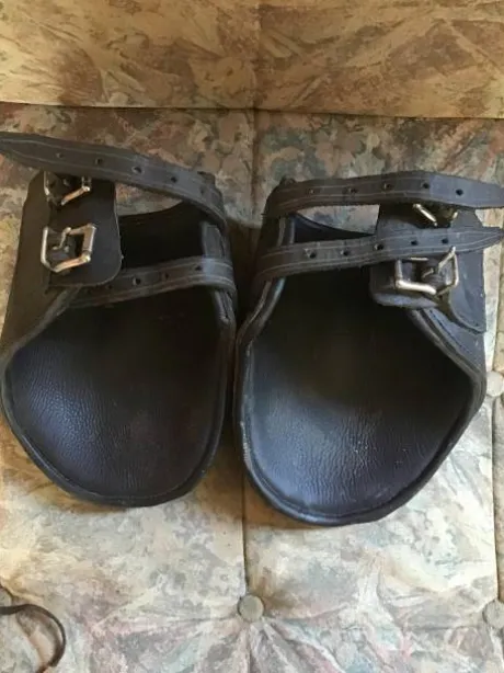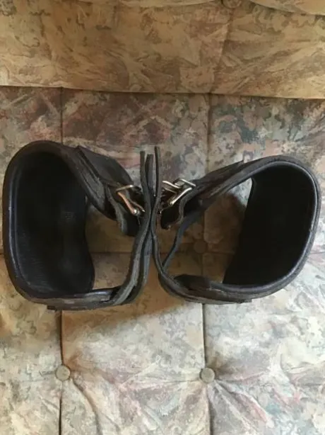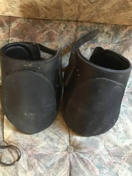 a vendre paire de protèges boulet en cuir. Taille cheval trait (pas sure).