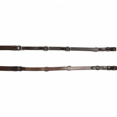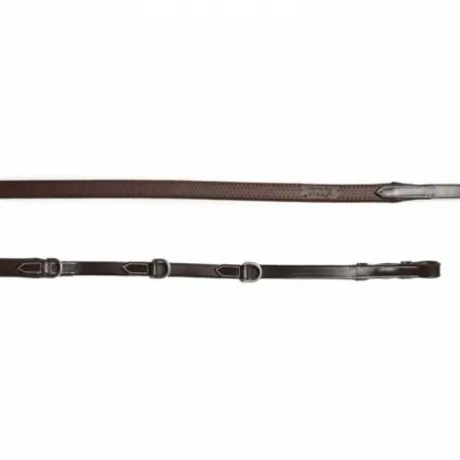 Les rênes d’enrênement Howlett sont non seulement fonctionnelles, mais aussi esthétiques. Fabriquées en cuir anglais pleine fleur de très grande qualité, elles sont disponibles en noir, acajou et havane pour s’accorder parfaitement à votre équipement. Leur bouclerie en inox assure une durabilité optimale, pour une utilisation sur le plat comme à l’obstacle.