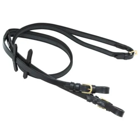 Rênes en caoutchouc tressé, offrant une prise en main optimale pour le cavalier.