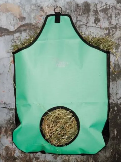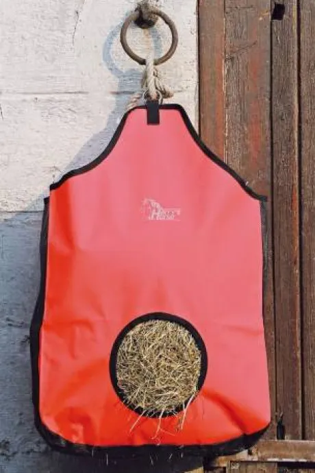 Sac à foin en nylon solide avec filet sur le fond et les côtés pour permettre à la poussière de s’évacuer.