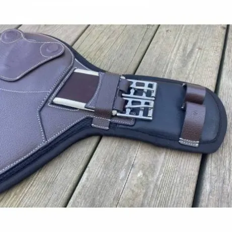 - Une sangle bavette adaptée aux selles mono-quartiers avec des sanglages bas