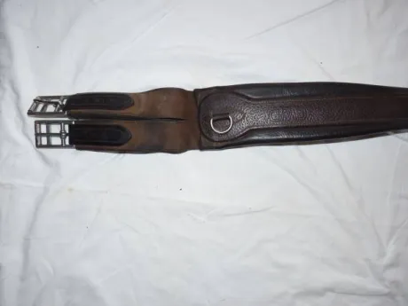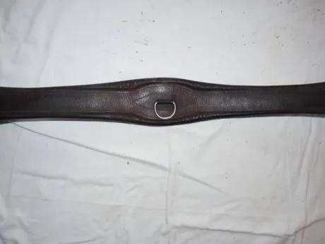 Sangle classique CWD taille 135 cm. 3 anneaux pour fixation enrênements. Marron. Quelques traces d’usure sur face interne. Toujours bien entretenue.
