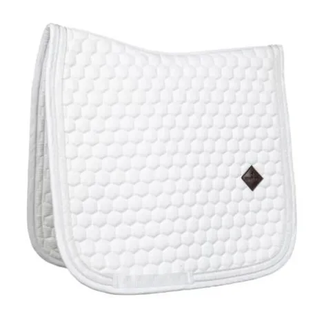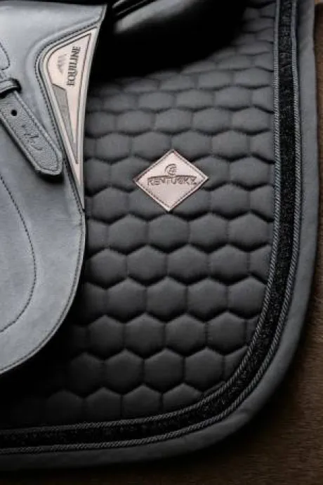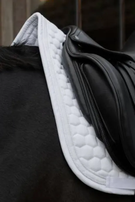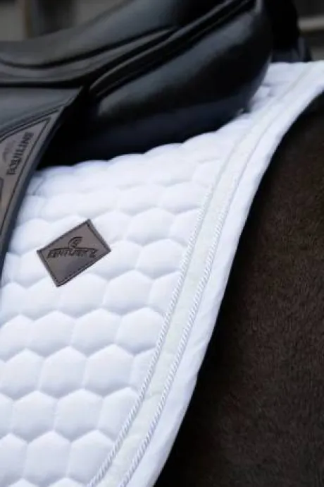 Fabriqué en coton-polyester à motif nid d’abeille, ce tapis assure un séchage rapide et un confort optimal même lors des entraînements intensifs. Son rembourrage intérieur est respirant, offrant un excellent amorti entre la selle et le dos de votre cheval. Le logo Kentucky brodé en cuir végan premium garantit une qualité visible de loin.
