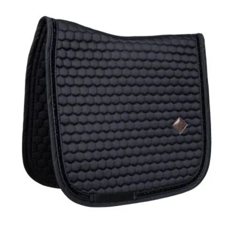 Avec sa bande pailletée élégante, le Tapis de Selle Glitter Band apporte une touche de sophistication à votre cheval. Son design exclusif attire le regard, que ce soit à l’entraînement ou en concours. De plus, il offre un espace généreux pour la broderie personnalisée, vous permettant d’ajouter une touche personnelle.