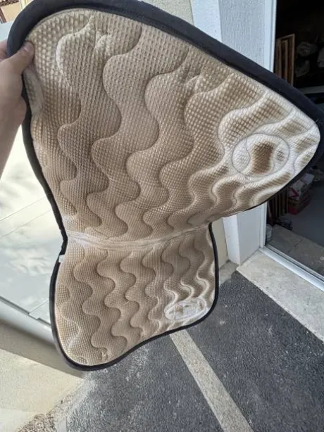 Je vends ce tapis de selle Jump’in couleur bordeaux avec liseré noir.