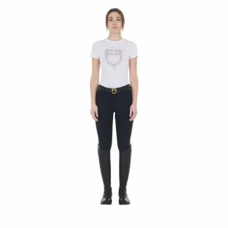 - Tee-shirt femme EQUESTRO coupe slim avec le logo Equestro en strass rosegold et blanc, manches courtes en coton doux de haute qualité.