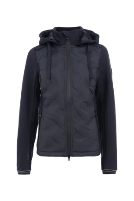 - Veste hybride sportive avec rembourrage léger en faux duvet et capuche amovible.