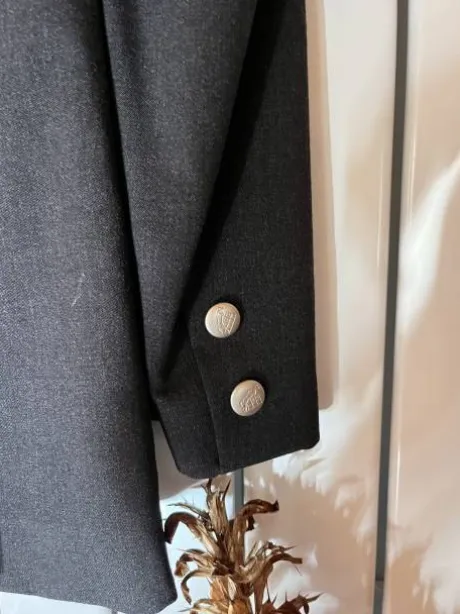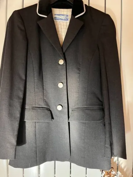 trés bon état, – grise anthracite, col velours noir, liseré blanc.