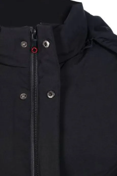 - Un design sobre avec une fermeture à boutons et zip à l’avant, de grandes poches zippées à l’avant et une capuche amovible