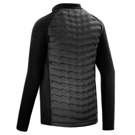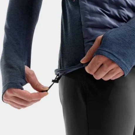 Muni d’un tissu en duvet et polyester sur le torse et le dos qui maintient la chaleur et protège du vent mais aussi d’une matière plus légère et stretch sur les bras, les épaules et les côtés qui permet de garder une plus grande liberté de mouvement et une meilleure évacuation de la transpiration et de l’humidité.